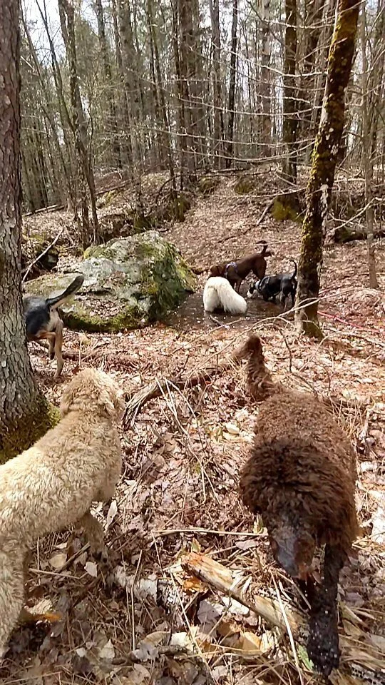 Dog camp is a wonderful alternative for friendly dogs to a daycare service. A day at camp offers so much more than a typical doggie daycare. On our romps, pack members are trained to walk off-leash or on a loose-leash. This training provides them the structure and freedom to experience healthy socialization while also getting lots of exercise and enrichment through running, swimming, sniffing, and playing with their furry friends! Once your pup is all tuckered out, we drop them off so you can come home to a tired and satisfied fur baby.